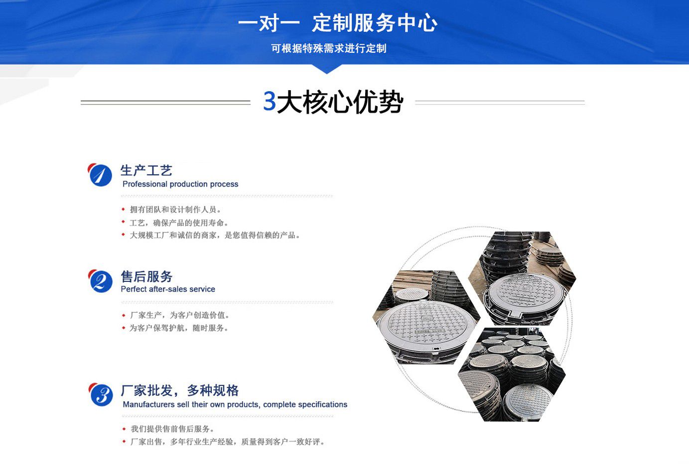 山東聊城健暉鑄造有限公司主營各種球墨鑄鐵井蓋,球墨鑄鐵防盜井蓋,球墨鑄鐵方形井蓋,球墨鑄鐵井蓋廠家等產(chǎn)品,可廣泛應(yīng)用于市政建設(shè)、軌道交通設(shè)施、城市園林綠化、安防配套設(shè)施、石油化工等諸多領(lǐng)域。  產(chǎn)品采用良好的工藝流程,以確保產(chǎn)品質(zhì)量的穩(wěn)定性:以良好的檢測設(shè)備,確保質(zhì)量的可靠性。廣泛應(yīng)用于國內(nèi)外城市的市政建設(shè),通信,自來水,消防,園林,環(huán)保等行業(yè),產(chǎn)品大獲贊譽(yù)!  我們堅(jiān)持“質(zhì)量為本、用戶至上、科技創(chuàng)新、科學(xué)管理”的經(jīng)營方針。  面向未來,我們積極響應(yīng)新時(shí)代的號召,走“一帶一路”、堅(jiān)持“綠色環(huán)保”的國家方針政策,秉承“安甄致選,普利天下”的企業(yè)理念,共同鑄就新時(shí)代的輝煌篇章。...
